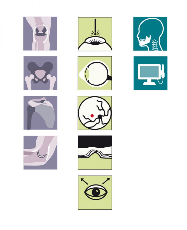 Piktogramme (Auswahl) Orthopädie, Augenheilkunde, Zahnmedizin; Neureuter Premium Publishers GmbH