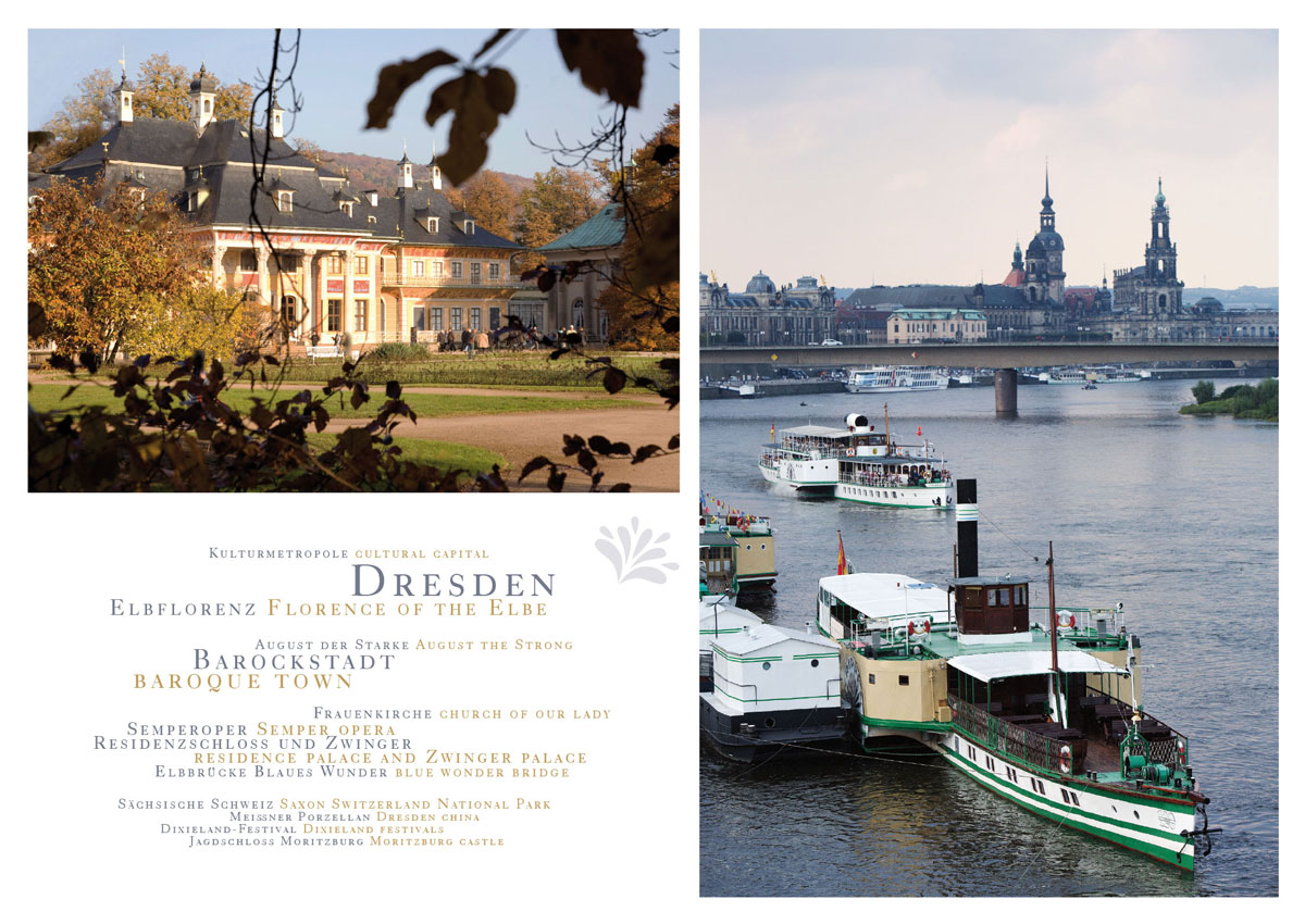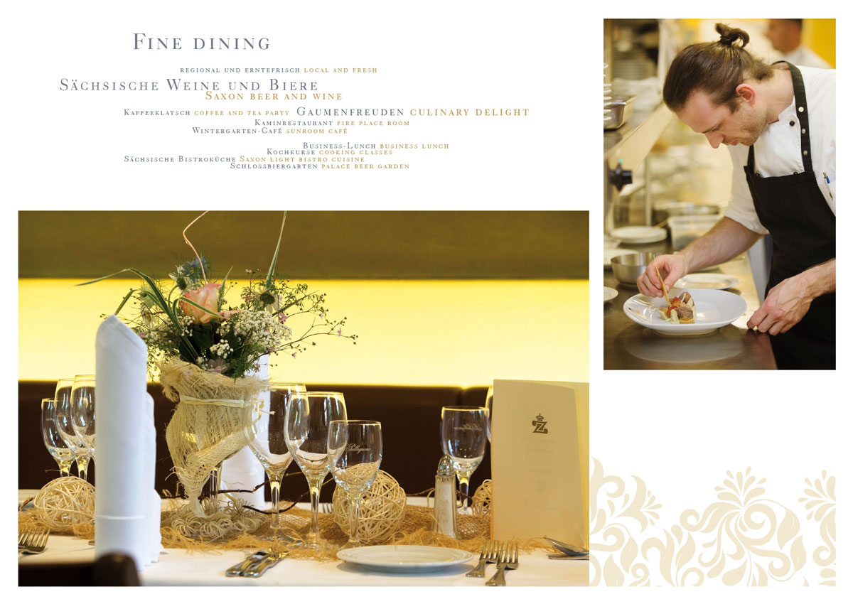 Beispiele Innenseiten Imagebroschüre „Schlosshotel Dresden-Pillnitz“, Fotografie: Angela Liebich