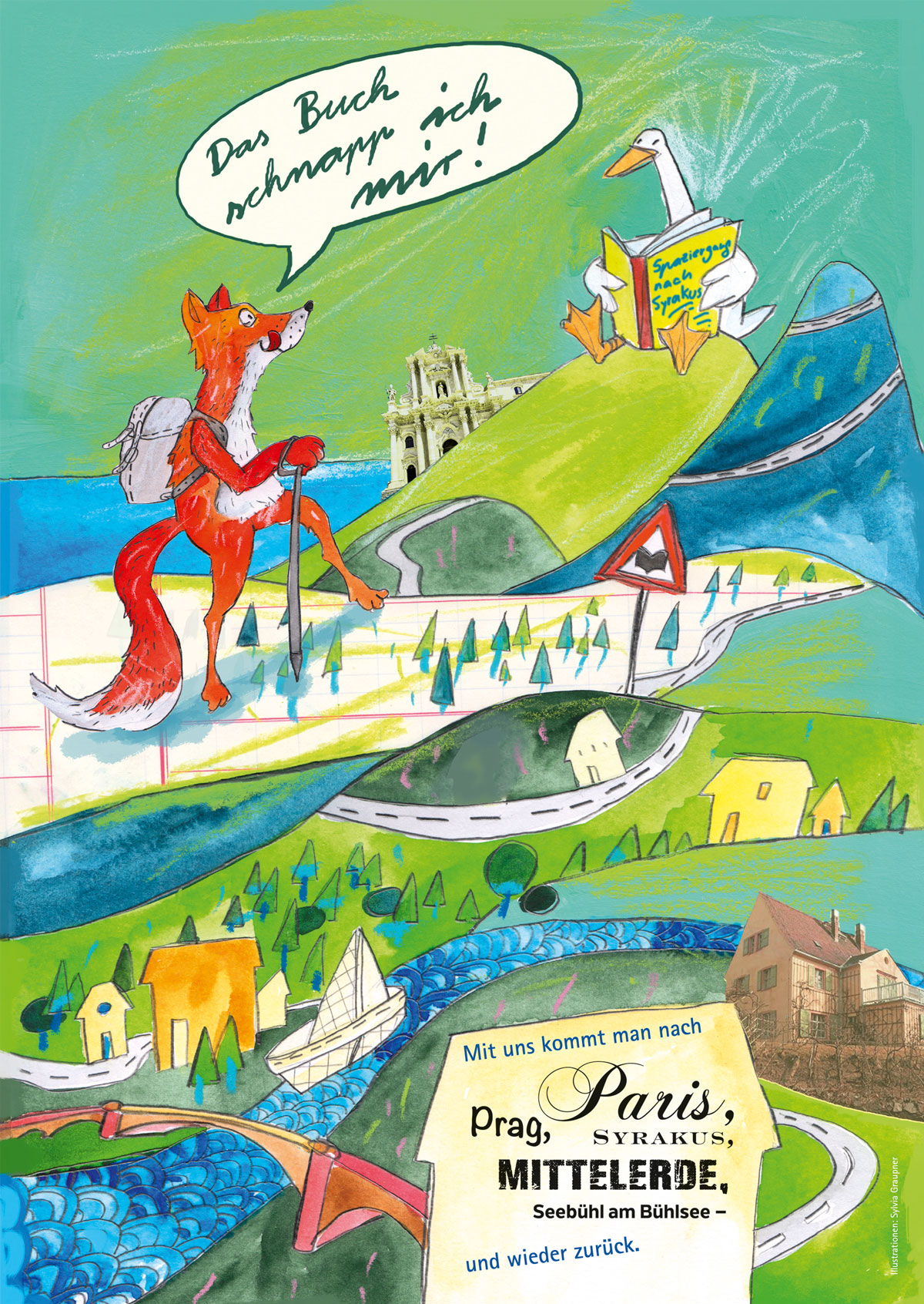 Flyer Bibliothek Grimma, Illustrationen: Sylvia Graupner